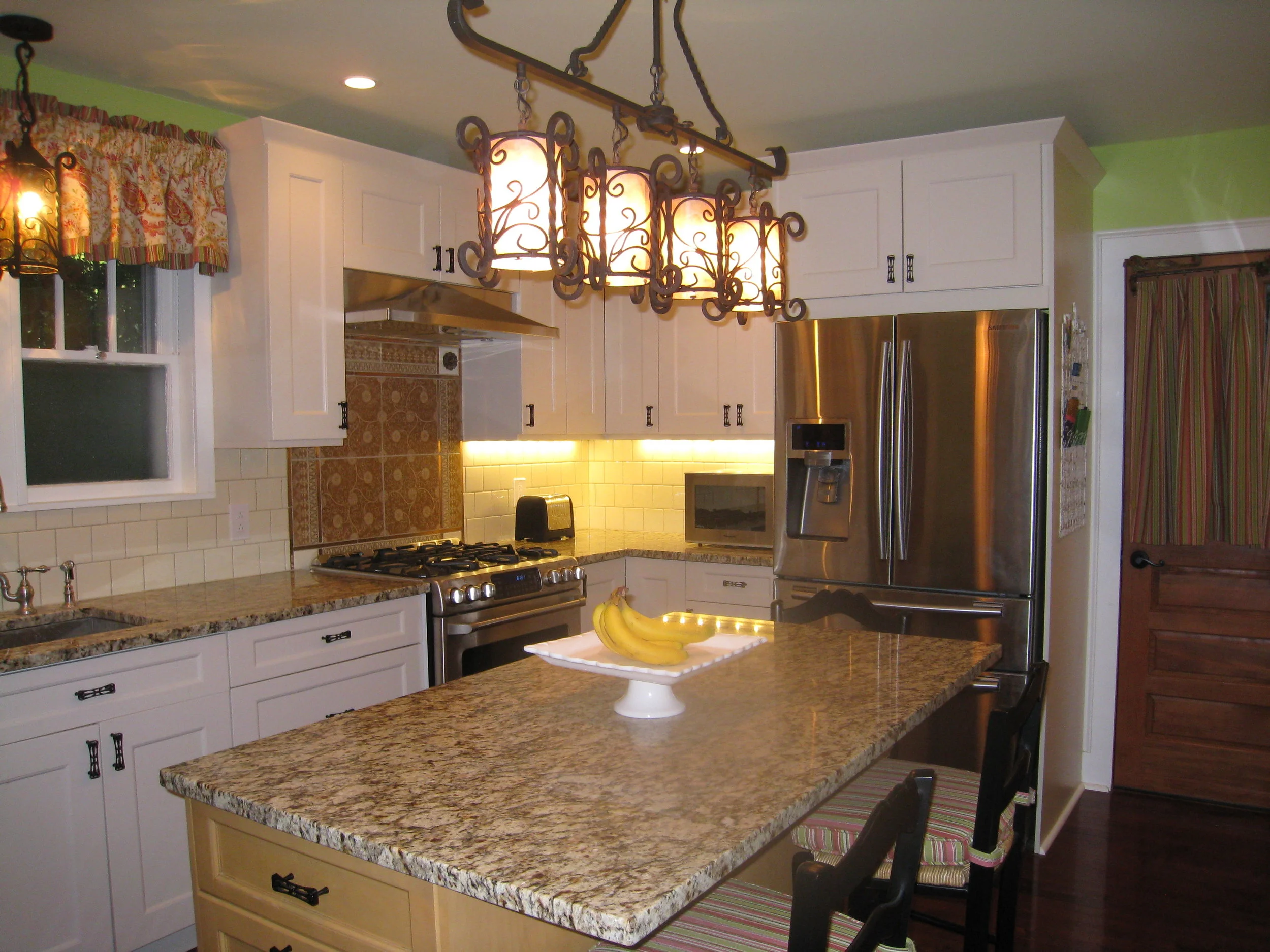 A charming home built in the 1930’s has much to offer. Unfortunately a functional kitchen was not one of those things. To design a kitchen that would meet the needs of my client who loved to cook and needed major storage without compromising the style of the home was my main objective. Having lived with such a dark and dreary room for so long, she was adamant about a light and airy feeling in the space and also wanted to have her favorite color green show cased. The original kitchen had 2 entrances- 1 from the hallway and 1 from the dining room. By eliminating the hallway entrance it allowed me to create a special baking area and extra storage. The white cabinetry and soft granite and backsplash allowed us to use the strong green color without overwhelming the space. A beautiful floral print fabric which brought in raspberry pinks with the green was used on custom window treatments and cushions for the counter stools. The lighting over the large sized island brings interest as well as functionality. This is a kitchen that now delights all of senses!